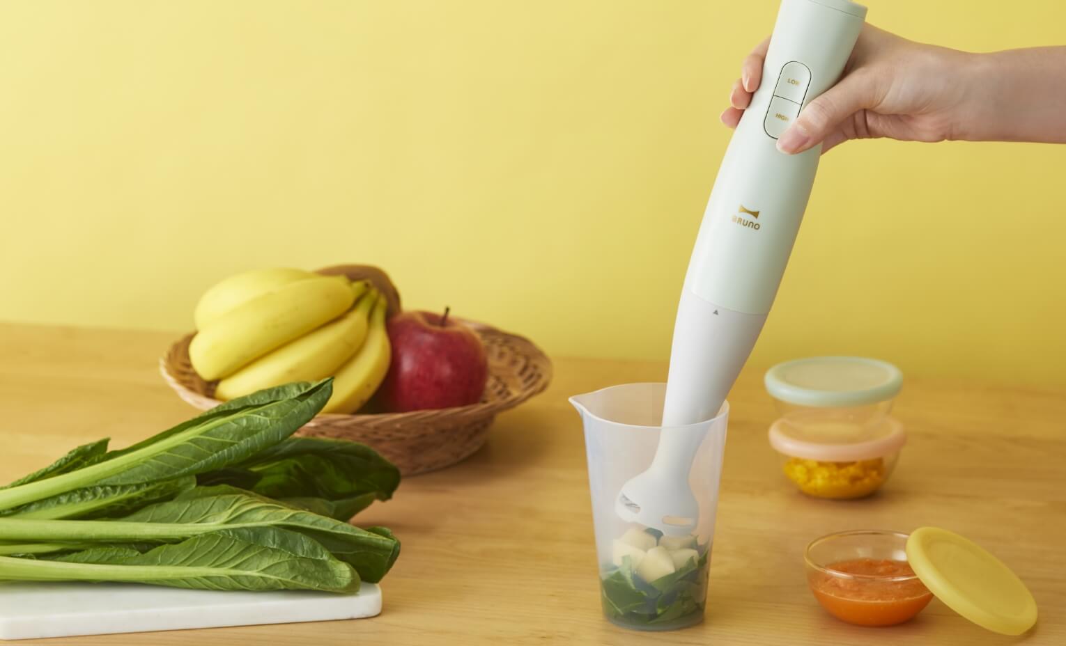 ハンドブレンダーなら、月齢にあわせて食材の大きさを簡単に調整できます!