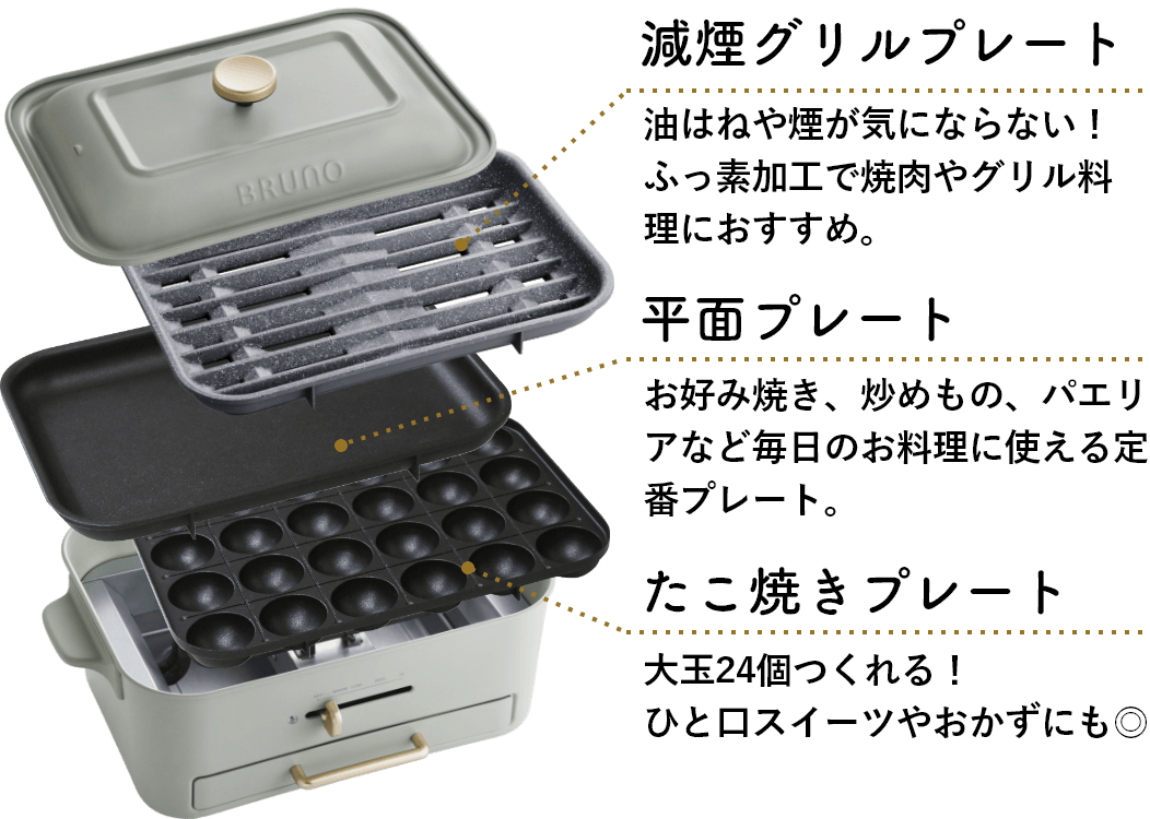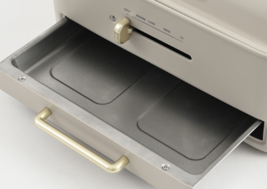 - 調理中に出る余分な脂はプレート穴から下の水受けトレイへ。おいしくヘルシーな料理が愉しめます。