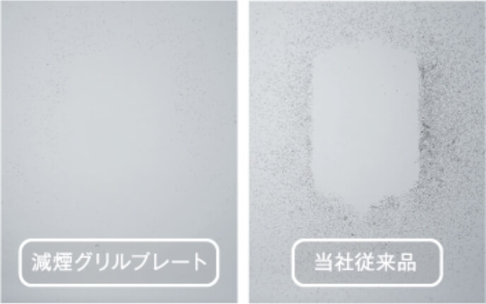 - ※2 発煙性試験 日本ラボテック株式会社(当社ホットプレートとの比較における発煙性カット率92.9% 調理開始後7分間の数値)