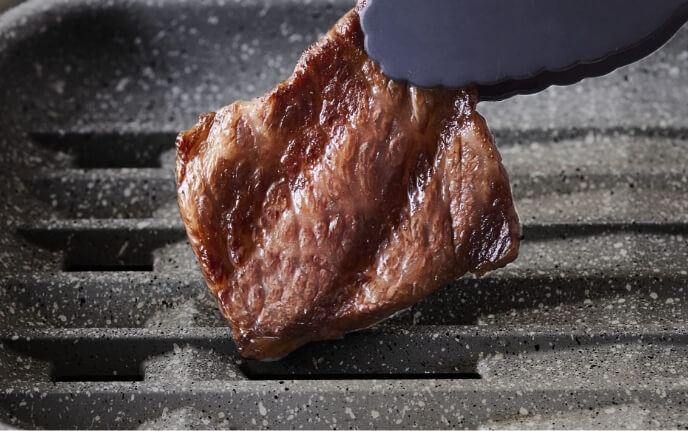 - 肉も野菜もBBQ のような食欲をそそるきれいな焼き目に。ふっ素加工で焦げ付きにくく、洗いやすい仕様です。