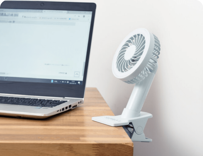 113gと超軽量で、片手におさまる小型サイズ。持ち運びしやすく大きく開くクリップ付きで、ノートPCや車内などちょっとした場所に簡単に取り付けできます。リュックに付けてアウトドアシーンでも活躍!ヘッドの向きは上下左右に角度調整、さらに3段階に風量切り替えができて、狙ったところに快適な風をお届けします。