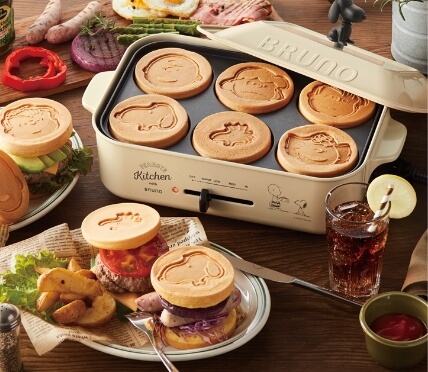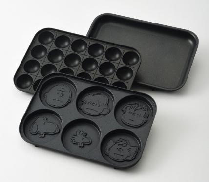平面プレート、たこ焼きプレートに加えて、スヌーピーたちのパンケーキが6種焼けるプレートが付属。