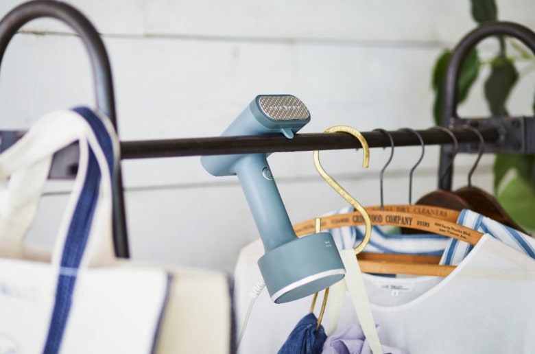 場所や量に合わせて幅が調節できる ハンガーにかけたまま、パワフルなスチームで気になるシワをサッと伸ばせる衣類スチーマー。女性でも片手で作業できる軽量コンパクトながら、大容量タンクで水を入れ直す手間を省きます。お出かけ前でもささっと手早くシワを伸ばしてくれるから、朝の身支度がもっと軽やかに。