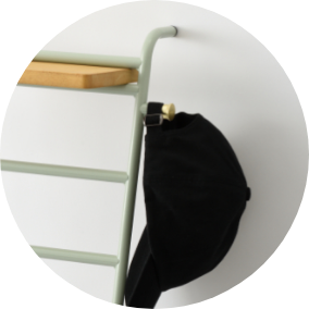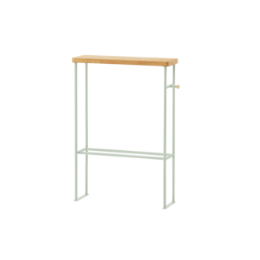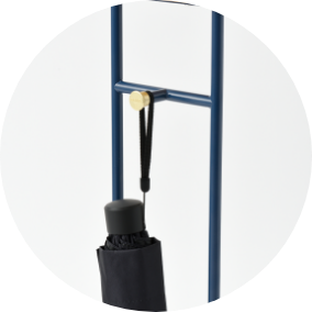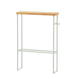 スリムなラックは廊下や玄関など限られたスペースにこそぴったり。天板はイヤホンやキーケースなどの小物置き場に、下のバーは長傘やレインコートを掛けて、サイドのフックにはエコバックやペット用リードなど。外出時に必要なアイテムがコンパクトに整頓できます。