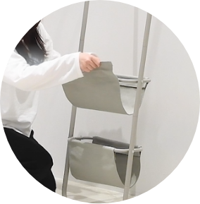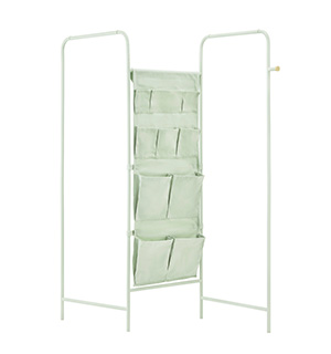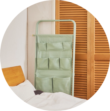 Z型・L型など空間をお好みで仕切ることができる収納付きパネルラック。リビング続きの寝室など、ちょっとしたスペースを分けたいときにぴったり。ハンギングポケットには小物をたっぷり収納できるのも使い勝手のいいポイントです。