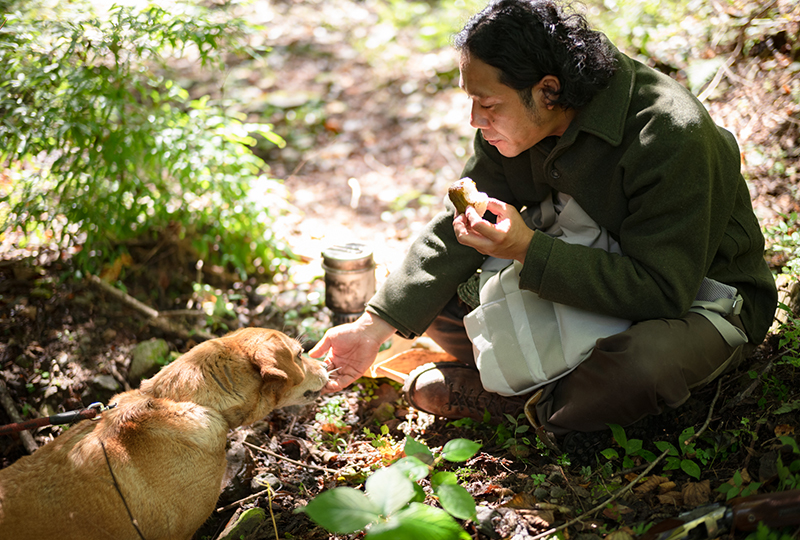 この日は猟銃を携えて森の中へ。相棒はもちろんチャーちゃん。