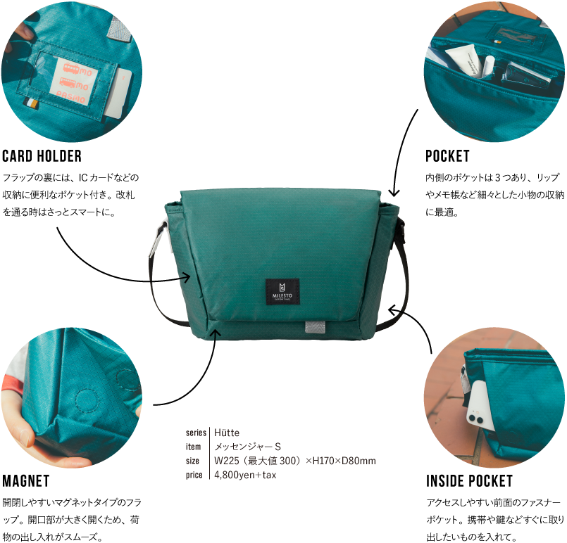 おでかけが気持ちいい季節が到来。こだわりの立体縫製で“active × fit”を叶えてくれる《Hütte》シリーズのメッセンジャー、すっきりと晴れ渡る日も、雨の日も、背負い心地はいつも快適。両手を自由にして、軽やかに街を散策しよう。