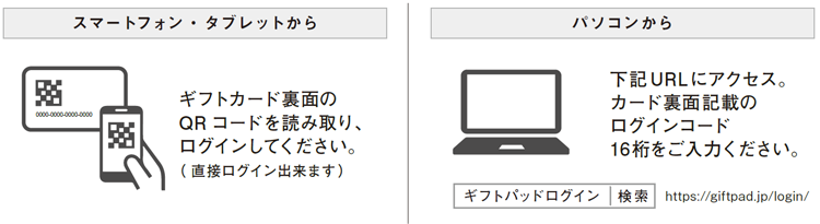 - ●交換サイトアクセスには、ギフトカードの裏面のQRコード(もしくは16桁コード)が必要となります。
